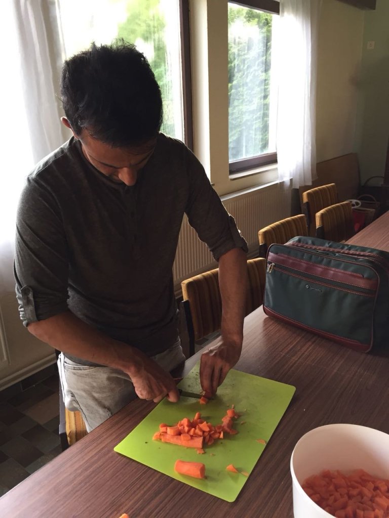 Am 27.04.2018 haben wir auf Initiative der ehrenamtlichen Flüchtlingshilfe im Gemeinschaftshaus der kath. Kirche in Angersbach mit und für ausländische Bürger gekocht. Gemeinsam gingen wir das Projekt für das Abendessen an. Es wurde kräftig geschnippelt, gebrutzelt, geköchelt und nach allen Regeln der Kunst gewürzt.